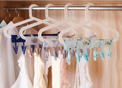 The spring-clip has strong holding force, prevent clothes from being blown off in windy days. Easy to tie to the clothes hanger with velcro sticker.