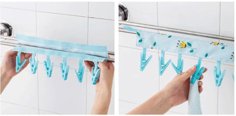 6 pieces of clips are included in 1 set, holds up to 6 items each time. It can help you save space in the wardrobe, laundry, bathroom, kitchen, hotel, etc. Easy to carry and store for travel and at supermarkets, home, car, etc.
