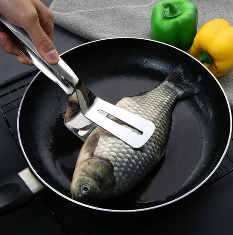 304 stainless steel material, easy to turn over when frying fish, can maintain the integrity of food, multi-purpose, suitable for frying fish, steak, can also be used as a barbecue clip, food clip.