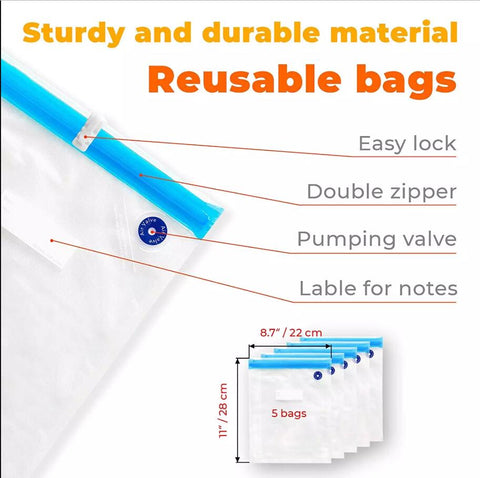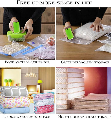 vacuum pumps and zip bags are not only used to store food, but you can also use it to store clothes (and courses for larger bags) and create enough space with the help of vacuum conditioning.