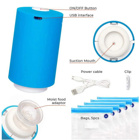 Material: ABSProduct size: host 8.5*5cm, vacuum machine small bag 22.5*21.5cm, vacuum machine big bag 26.5*34cm